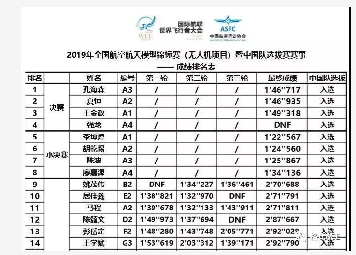 ,第八名Sam。再次恭喜各位成功晉級(jí)無人機(jī)國家隊(duì)!
